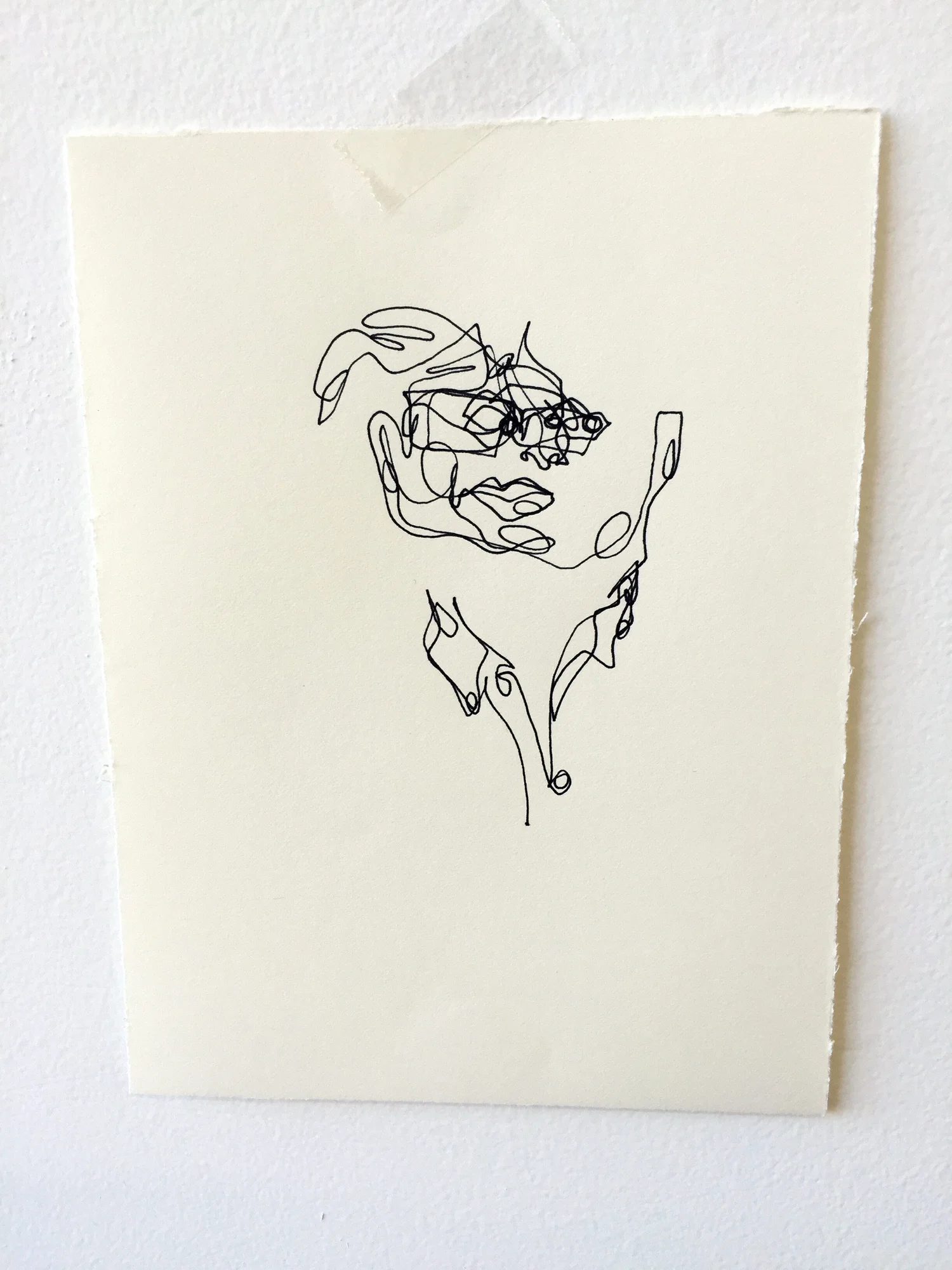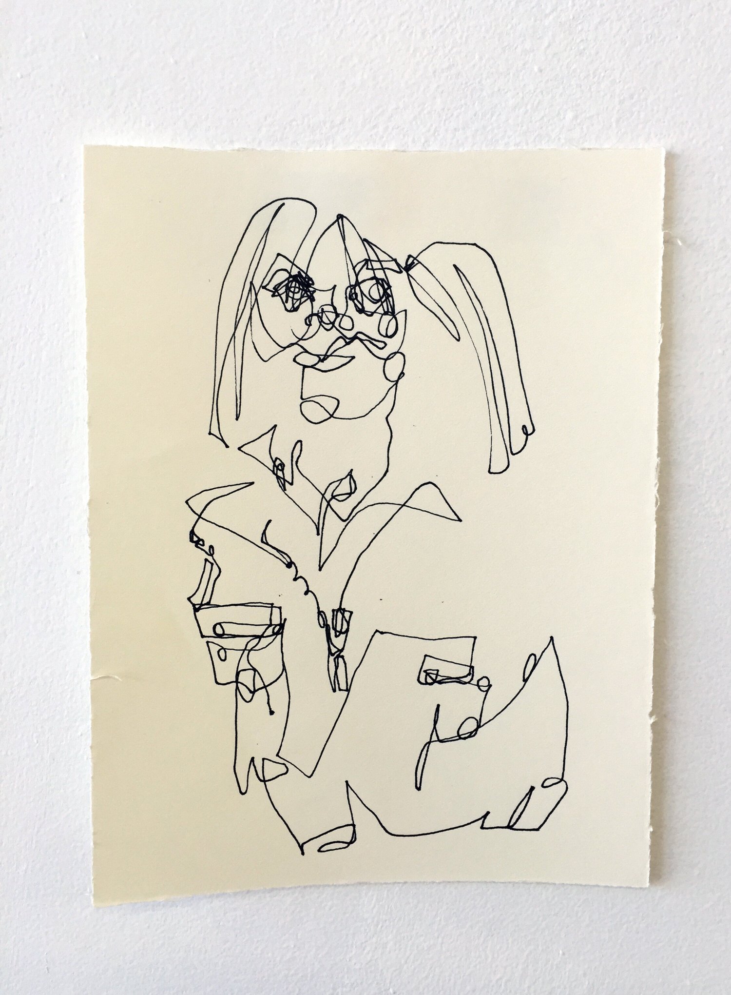 Tell me a story about your mother, an interactive drawing performance by Caitlin Metz, invited gallery visitors to tell a story about their mother while they created blind contour portraits of each storyteller. These drawings were posted on the gallery wall and kept there until the exhibition was deinstalled.