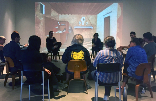 The panelists discussed how artists can employ objects to engage action and how one performs the act of making. As a first generation US citizen, Laurencia Strauss proposes immigrant experiences as valuable resource to imagine solutions for a population facing relocation due to sea-level rise. Strauss employs sculptural action in public spaces by offering popsicles and napkins printed with stories from previous participants in exchange for stories about place, identity, migration, and belonging. Porto Alegre is a city with a pristine river landscape that is being privatized by developers to deny public access. As an act of protest, Denis Rodriguez and Leonardo Remor’s project Water Fantasy invites participants to carry inflatable innertubes on the long walk to the closest remaining access point in order to simply spend time with water. Amber Hawk Swanson’s search for community has shaped her practice and led to projects engaging collaborators belonging to silicone sex doll forums. Her most recent project, DOLLY, will involve the casting of a life-sized penetrable silicone dolphin as an exploration of love, eroticism, seduction, objectification, violence, and captivity. This project of giving presence to the objectified has involved embodied research in saltwater sensory deprivation tanks.